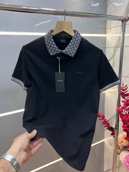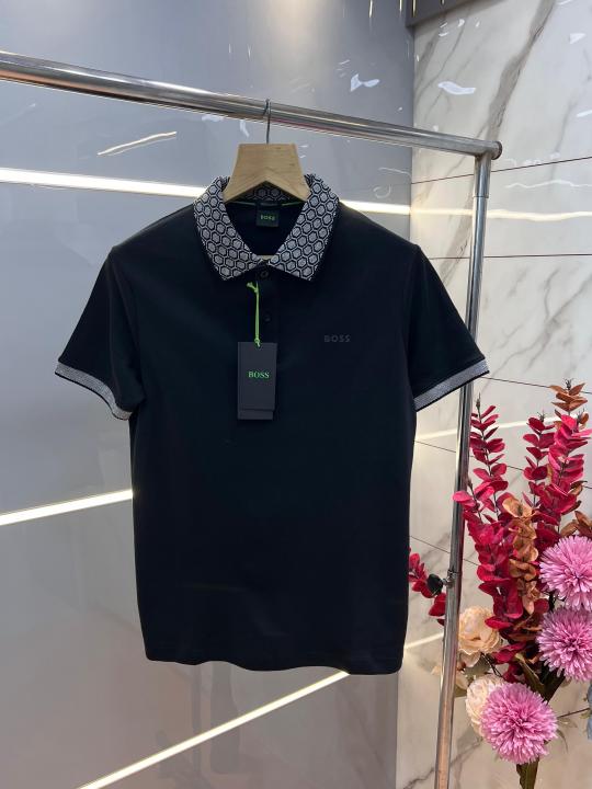 Hugo Bos s Black Premium 240 gsm interlock compact cotton fabric Polo Tshirt with Collar Design and Emboss Logo 3361