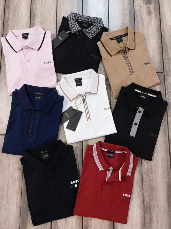 Hugo Bos s Sandal Premium 240 gsm interlock compact cotton fabric Polo Tshirt with Collar Design and Emboss Logo Zip Style 3366