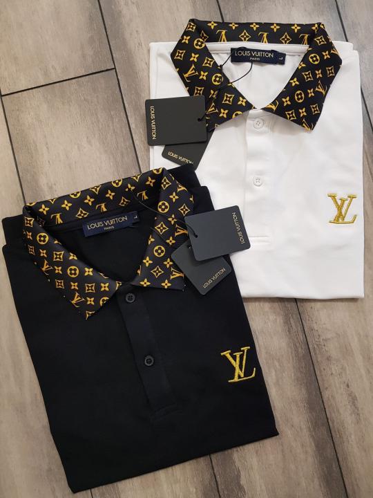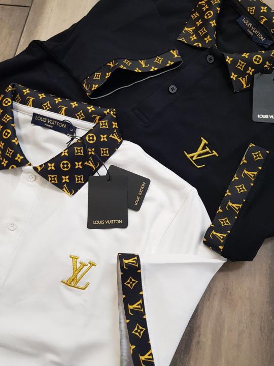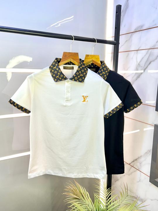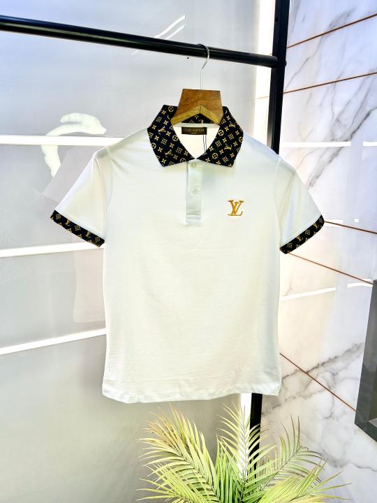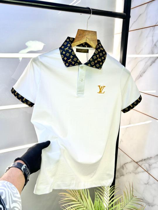 Home T-Shirts Louis_Vuitton Imported Embroidery Logo Collar Neck White Polo T-shirt F1193-WH